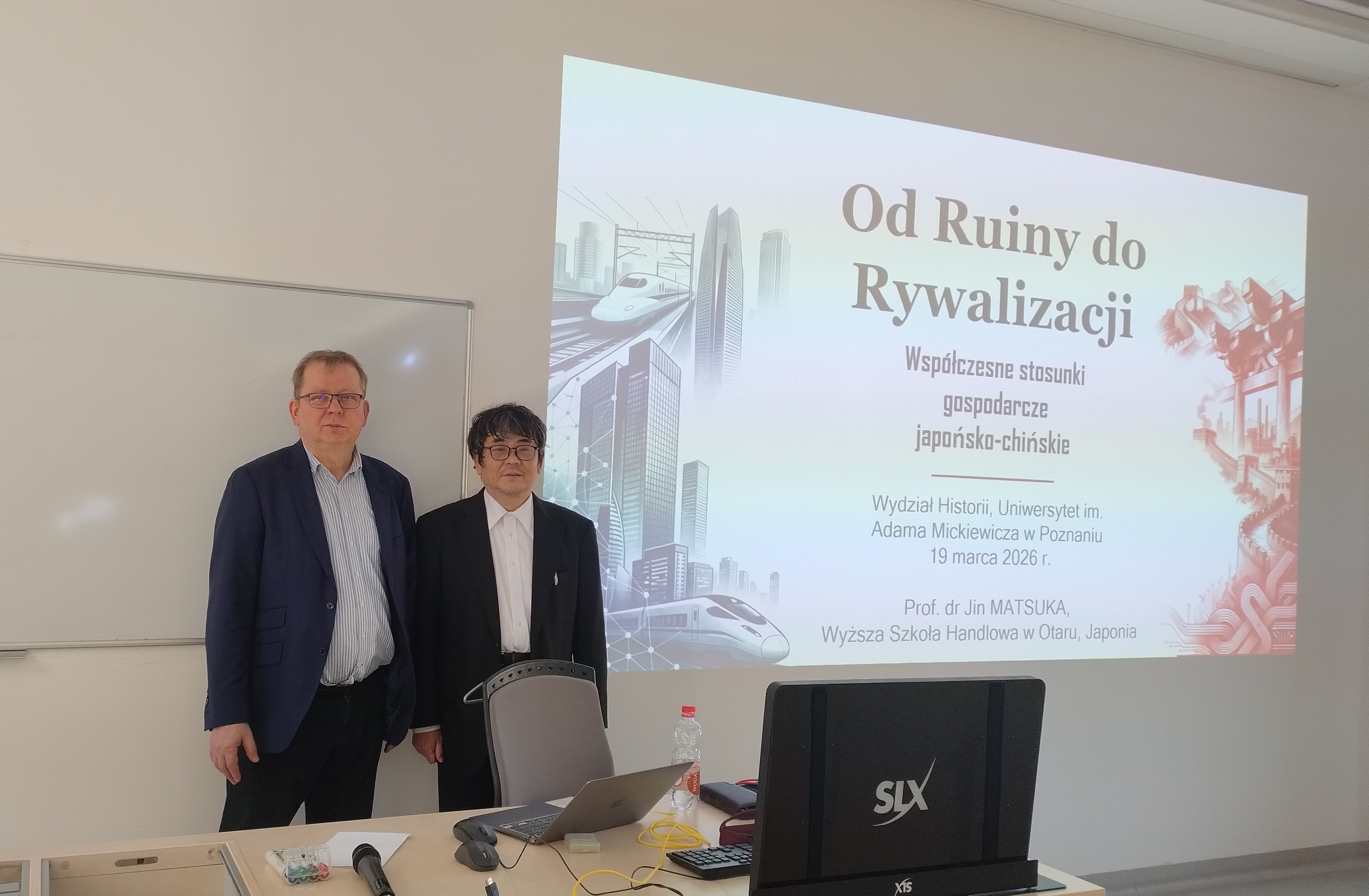W dniu 19 marca 2026 Wydział Historii UAM miał zaszczyt gościć Pana Profesora Jina Matsukę (Wyższa Szkoła Handlowa w Otaru, Japonia) na Wydziale Historii UAM. Pan Profesor wygłosił wykład pt. Od ruiny do rywalizacji. Współczesne stosunki gospodarcze japońsko – chińskie.